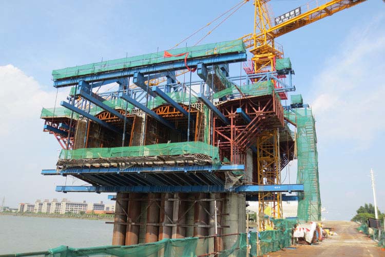 組成部分:承重結構、懸吊系統、錨固裝置、走行系統和工作平臺 。承重結構是掛籃的主要受力構件, 它承受施工設備和新澆筑節段混凝土的全部重量, 并 通過支點和錨固裝置將荷載傳到已施工完成的梁身上。